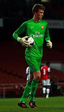 ![]() Macey playing for Arsenal U21 in 2013 | |||
