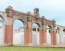 The original school was founded in 1913. Early students arrived to school via horse and buggy or the now defunct Kahului Railroad.[3] The old school site, at 20°54′56″N 156°20′55″W, includes the campus's centerpiece administration building, built in 1921 and designed by architect Charles William Dickey, which fell into disrepair. The site was nominated to the State and National Register of Historic Places.[4] Work to restore the campus was started in 2004 by community organizations including the Friends of Old Maui High[5] and Community Work Day. The campus boasts the sculptures A Path Through the Trees by Satoru Abe, Growing by Toshiko Takaezu, and Carolina by Thomas Woodruff.