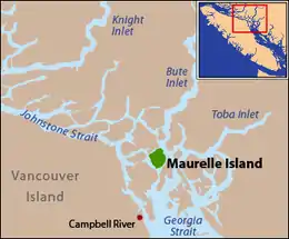 ![]() Maurelle Island is located in the middle of the Discovery Islands | |