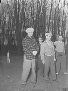 In 1942, Chevalier was named on a list of French collaborators with Germany to be killed during the war, or tried after it.[17] That year he returned to La Bocca, near Cannes, but returned to the capital city in September. In 1944 when Allied forces freed France, Chevalier was accused of collaboration.[3] The August 28, 1944, issue of Stars and Stripes, the daily newspaper of U.S. armed forces in the European Theater of Operations, reported in error that "Maurice Chevalier Slain By Maquis, Patriots Say". Even though he was acquitted by a French convened court, the English-speaking press remained hostile and he was refused a visa for several years.[18] In a review of the 1969 Oscar-nominated documentary film about French collaboration Le chagrin et la pitié (The Sorrow and the Pity), Simon Heffer draws attention to “a clip of Maurice Chevalier explaining, entirely dishonestly, to an anglophone audience how he had not collaborated.”[19]