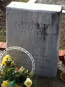 Mayhayley Lancaster died May 22, 1955. In addition to her legal, political and educational activities, she was also described as a noted fortune teller, numbers runner and self-proclaimed "Oracle of the Ages". She is buried in the cemetery at Caney Head Methodist Church.