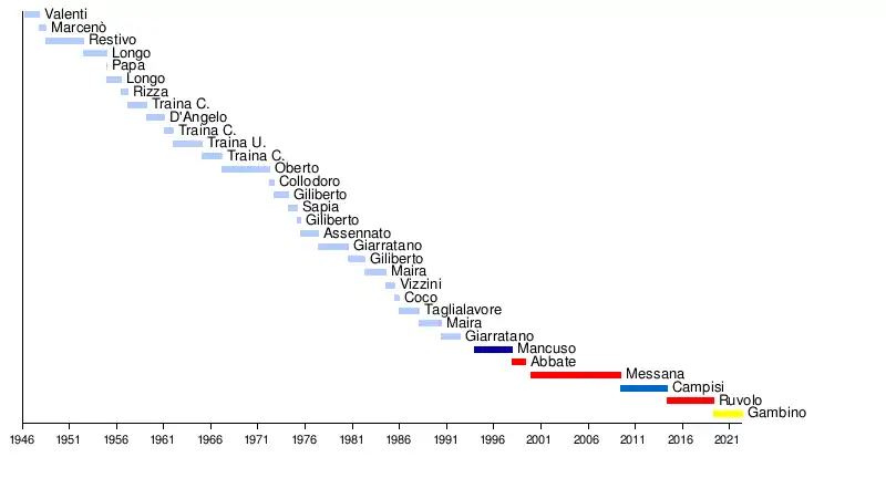 | Giuseppe Mancuso | 6 December 1993 | 15 December 1997 | Italian Social Movement National Alliance | |