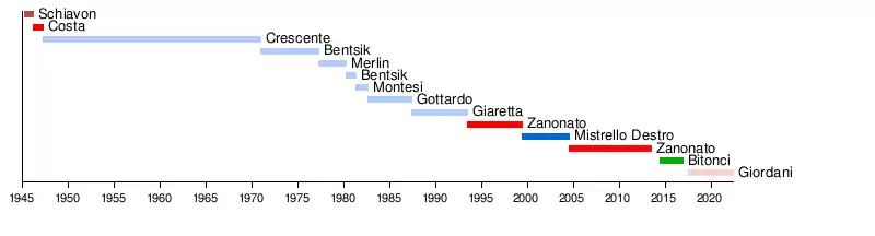 | 1 | Giuseppe Schiavon | 28 April 1945 | 19 April 1946 | PCI |