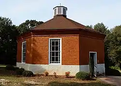 McBee Methodist Church, also known as McBee Chapel, is an octagonal, brick, United Methodist church building on Main Street in Conestee, Greenville County, South Carolina. Built in 1856,[2] it was designed by millwright John Adams and named for Vardry McBee (1775–1864), the "Father of Greenville," whose son donated the money to build it. The church was built with a balcony used by slaves. When the balcony was removed sometime following the Civil War, its separate door, to the left of the main entrance, was converted into another window.[3][4][5]