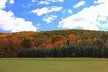 McCauley Mountain (also known as McAuley Mountain[2] or McCauley's Mountain[3]) is a mountain in Columbia County, Pennsylvania, in the United States.[1] Its official elevation is 1,571 feet (479 m) above sea level. The mountain is a synclinal mountain. Main rock formations on and near it include the Mauch Chunk Formation and the Pottsville Formation. There are also coal deposits on it. The coal deposits were discovered in 1826 and mining of them began in the 1850s. However, coal mining on the east side of the mountain proved to be a commercial failure. There are a number of ponds on the mountain, some of which were created during the mining. However, others are natural vernal pools. Some of the ponds are surrounded by hemlocks and deciduous trees. Major streams near the mountain include Scotch Run, Beaver Run, and Catawissa Creek. The mountain is named after Alexander McCauley, who settled there in 1774.