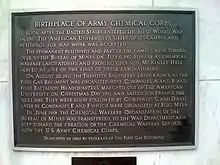 - Major General WM. L. Sibert expressed gratitude to AU on behalf of the Chemical Warfare Service for the use of the campus during World War I. The Chemical Warfare Service left the American University Campus July 1, 1919.[9]
