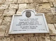 On 10 June 1798, Mdina was captured by French forces without much resistance during the French invasion of Malta.[26] A French garrison remained in the city, but a Maltese uprising broke out on 2 September of that year. The following day, rebels entered the city through a sally port and massacred the garrison of 65 men.[27] These events marked the beginning of a two-year uprising and blockade, and the Maltese set up a National Assembly which met at Mdina's Banca Giuratale.[28] The rebels were successful, and in 1800 the French surrendered and Malta became a British protectorate.[21]