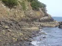 Meadfoot beach is a mixture of rock, stone and sandy areas. At the rocky eastern end there is a cliff and a car park, which gives access to a boat launching ramp. The western end is more sandy and has facilities such as a cafe and beach huts.[1] Beyond the beach, the road is adjacent to a cliff and there are parking spaces along the bottom of this. It is a common sight to see people fishing from the rocks. It is generally known as a local's beach due to its location away from the more popular tourist areas of Babbacombe and Torre Abbey. The Osbourne hotel overlooks the beach. Meadfoot beach has won the prestigious European blue flag award for the quality of its water. There are new 2 storey beach huts at one end, that cost to build in excess of £1,600,000.[2]