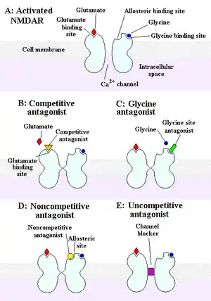 The key player in the dramatic process of cationic influx is glutamate, an excitatory neurotransmitter that triggers excitotoxicity during anoxic depolarization.[8] A number of ionotropic receptors have been identified as contributing to anoxic depolarization of nerve cell membranes. They include the NMDA receptors, AMPA receptors, P2X7 purinergic receptors, pannexin channels (Panx1), transient receptor potential (TRP) channels, and acid-sensing ion channels (ASICs).[1]