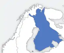 The history of Finland begins around 9,000 BC during the end of the last glacial period. Stone Age cultures were Kunda, Comb Ceramic, Corded Ware, Kiukainen, and Pöljä cultures. The Finnish Bronze Age started in approximately 1,500 BC and the Iron Age started in 500 BC and lasted until 1,300 AD. Finnish Iron Age cultures can be separated into Finnish proper, Tavastian and Karelian cultures.[1] The earliest written sources mentioning Finland start to appear from the 12th century onwards when the Catholic Church started to gain a foothold in Southwest Finland.[2]