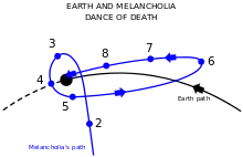 The idea of a planetary collision was inspired by websites with theories about such events. Von Trier decided from the outset that it would be clear from the beginning that the world would actually end in the film, so audiences would not be distracted by the suspense of not knowing. The concept of the two sisters as main characters developed via an exchange of letters between von Trier and the Spanish actress Penélope Cruz. Cruz wrote that she would like to work with von Trier, and spoke enthusiastically about the play The Maids by Jean Genet. As von Trier subsequently tried to write a role for the actress, the two maids from the play evolved into the sisters Justine and Claire in Melancholia. Much of the personality of the character Justine was based on von Trier himself.[13] The name was inspired by the Marquis de Sade novel Justine (1791).[14]