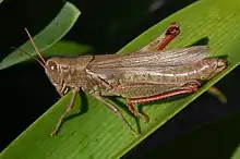 Melanoplus yarrowii, known generally as the Yarrow's grasshopper or Yarrow's spur-throat grasshopper, is a species of spur-throated grasshopper in the family Acrididae.[1][2][3][4] It is found in North America.[1][5]