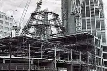 Large scale redevelopment of the city block bounded by Lonsdale, Swanston, La Trobe and Elizabeth Streets was studied in some detail during the 1960s and 1970s, being closely linked with work on the City Loop underground railway.[8] Early work on the site commenced in 1971 when land on the south side of La Trobe Street was acquired, to enable the cut and cover construction of Museum Station (now known as Melbourne Central). With planning for the site being carried out by the Melbourne Underground Rail Loop Authority from 1980, the railway station opened in 1981, but protracted negotiations failed to find an anchor tenant for the development, resulting in the State Government of Victoria deciding in 1983 that a private developer should be sought.[8]
