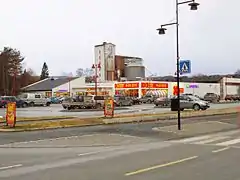 The village lies along the European route E06 highway as well as the Dovrebanen railway line. The railroad stops at the Melhus Station in the central part of the village. The historic Melhus Church is located about 1.5 kilometres (0.93 mi) south of Melhus in the village of Storsand. Melhus is the largest urban area in the municipality, so it has a mall, many stores and businesses, restaurants, banks, a medical centre, a school, and the municipal government offices.