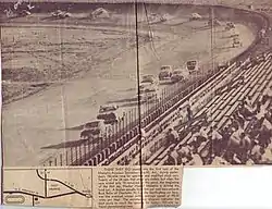 The NASCAR Grand National (now the NASCAR Cup) Series would visit this track numerous times during the 1955 and 1956 Grand National seasons.[2] Clint McHugh from Iowa (who tumbled over a guard rail and into a lake 50 feet below the embankment at the age of 28)[3] and Cotton Priddy (from Louisville, Kentucky) are the two race car drivers who lost their lives on this allegedly dangerous race track.[6] Since the 1960s, the track was never used for its intended purpose of stock car racing.[6] At a race held on November 1954, twelve thousand fans would attend a race spanning 250 miles (400 km) where Buck Baker would end up winning the 1954 running of the Mid-South 250.[7]