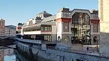 The Mercado de la Ribera (Ribera Market) is a market square in Bilbao, the capital of the Basque Province of Viscay in the north of Spain. It is on the right bank of the Nervion River, next to Casco Viejo. Its built area of 10,000 square metres (110,000 sq ft) makes it the biggest covered market in Europe.[1] Inside it, there are stalls that sell different products, mostly fresh produce. There are fish markets, butchers and green grocers. There is also a part of the market for the local farmers' products.