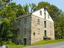 Merkel Mill Complex is a historic grist mill complex located in Richmond Township, Berks County, Pennsylvania. The complex consists of the 2+1⁄2-story, stone banked mill with tin roof (1854); 2+1⁄2-story, stone Georgian-style manor house (1767); large stone and frame barn with banked earth ramp (c. 1850); one-story smokehouse with slate roof (c. 1767); 1+1⁄2-story stone summer kitchen (c. 1767); clapboarded frame privy (c. 1939); storage shed (c. 1939); and the millraces, dam, and pond. The mill ceased operation about 1939. The mill was built as part of a working farm.[2]