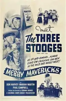Merry Mavericks is a 1951 short subject directed by Edward Bernds starring American slapstick comedy team The Three Stooges (Moe Howard, Larry Fine and Shemp Howard). It is the 133rd entry in the series released by Columbia Pictures starring the comedians, who released 190 shorts for the studio between 1934 and 1959.