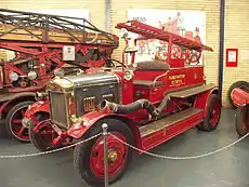In 1899, Merryweather produced the world's first successful self-propelled steam fire engine, the 'Fire King'; the first was dispatched to Port Louis on Mauritius.[3] The first motorised fire engine in London was a Merryweather appliance delivered to the Finchley Fire Brigade in 1904. It was commemorated in April 1974 by the issue of a 3.5 pence Royal Mail postage stamp. The actual vehicle is preserved in the reserve collection of the Science Museum at Wroughton in Wiltshire. Another notable survivor is the UK's oldest known aerodrome fire/crash tender, a 1937 Merryweather with a Commer engine and chassis, now preserved in running order at Brooklands Museum in Surrey.