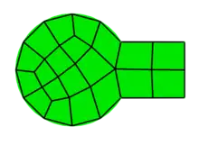What is the precise definition of a mesh? There is not a universally-accepted mathematical description that applies in all contexts. However, some mathematical objects are clearly meshes: a simplicial complex is a mesh composed of simplices. Most polyhedral (e.g. cubical) meshes are conformal, meaning they have the cell structure of a CW complex, a generalization of a simplicial complex. A mesh need not be simplicial because an arbitrary subset of nodes of a cell is not necessarily a cell: e.g., three nodes of a quad does not define a cell. However, two cells intersect at cells: e.g. a quad does not have a node in its interior. The intersection of two cells may be several cells: e.g., two quads may share two edges. An intersection being more than one cell is sometimes forbidden and rarely desired; the goal of some mesh improvement techniques (e.g. pillowing) is to remove these configurations. In some contexts, a distinction is made between a topological mesh and a geometric mesh whose embedding satisfies certain quality criteria.