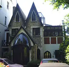 - St John's Wood: perhaps surprisingly, there is no mention of Lord's Cricket Ground, part of which had to be dug up in the 1890s to facilitate tunnelling for the Great Central Railway into Marylebone station.[3] Instead, Betjeman concentrates on St John's Wood as a Victorian suburb and, in particular, the former residence of a clergyman, John Hugh Smyth-Pigott,[4] "whose Clapton congregation declared him to be Christ,/a compliment he accepted". This house, situated in Langford Place, has since been the home variously of Charles Saatchi and of Vanessa Feltz;[5]