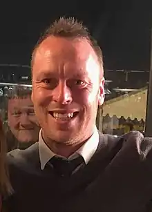 Flynn worked part-time jobs early in his career, stacking shelves while a youth player for Newport. He worked as a postman in 2001 prior to his first professional contract with Barry Town.[51] Flynn married Victoria in 2016, and has five children; one daughter and two sons from previous relationships: Dionne (b. 2000), Charlie (b. 2014) and Theo (b. 2014) and two sons with Victoria: Edward (b. 2015) and Samuel (b. 2017).[50][52]