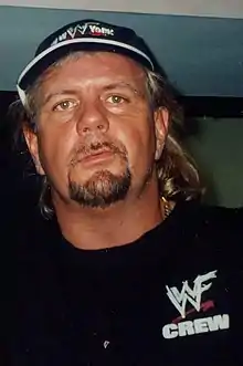 In 1991, The Freebirds feuded with "The Young Pistols" (Steve Armstrong and Tracy Smothers). They soon added another Freebird, the masked Badstreet.[4] He helped them win the U.S. Tag Team Titles and they all won the Six-Man Titles.[7][8] They also had two managers briefly, Big Daddy Dink and Diamond Dallas Page. Once Badstreet departed from the group in late 1991, The Freebirds were left with no real direction. The Freebirds turned face, and Garvin's wife Precious became their on-screen manager. Although they won the U.S. Tag Titles again, The Freebirds disbanded by late 1992.[4] Hayes then turned heel again and started managing Arn Anderson and Bobby Eaton, who were still members of the Dangerous Alliance. He became a member of sorts and even helped Paul E. Dangerously in his feud with Madusa. In 1993, Hayes became a fan favorite again and feuded with Paul Orndorff over the TV Title and then briefly teamed (and later feuded) with Johnny B. Badd and also did some commentating before quitting WCW in January 1994, after being offered a $75,000 a year contract (Hayes would make one final appearance in WCW at SuperBrawl IV in February).