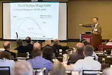 In recent years, Keane has argued persuasively that, due to human capital effects, labor supply elasticities are much larger than the previous consensus of the economics profession would suggest. These views are presented in Imai and Keane (2004), Keane (2010) and Keane and Rogerson (2012).[26][27] If correct, his views imply that welfare losses from income taxation are much higher than was previously thought. Recently, Keane gave a keynote lecture summarizing this work at the 2015 annual meeting of the Royal Economic Society.[28] His Cowles lecture at the 2011 summer meeting of the Econometric Society also dealt with this topic.