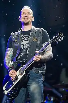 Michael Schøn Poulsen (born 1 April 1975) is a Danish singer, guitarist and songwriter. He is the lead vocalist, rhythm guitarist and main songwriter of rock band Volbeat. Prior to Volbeat, Poulsen was the vocalist for the death metal band Dominus.