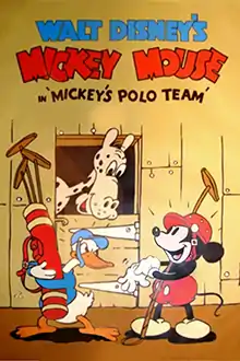 Mickey's Polo Team is a 1936 American animated short film produced by Walt Disney Productions and released by United Artists. The cartoon features a game of polo played between four Disney characters, led by Mickey Mouse, and four cartoon versions of real-life movie stars. It was directed by David Hand and was first released on January 4, 1936. The film was inspired by Walt Disney's personal love of polo.[2] It was the 80th Mickey Mouse short film to be released, and the first of that year.[3]