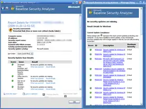 |  Screenshot of Microsoft Baseline Security Analyzer analysis result | |