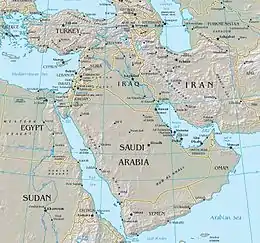 The Greater Middle East was a political term coined by the second Bush administration in the first decade of the 21st century,[34] to denote various countries, pertaining to the Muslim world, specifically Iran, Turkey, Afghanistan and Pakistan.[35] Various Central Asian countries are sometimes also included.[36]