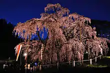 - Takizakura Park - The name "Miharu" in Japanese means three springs. In most parts of Japan, plum, peach, and cherry trees blossom at different times, but in Miharu, they blossom almost simultaneously. Miharu is home of the Takizakura, or "waterfall cherry tree", is over 1,000 years old and brings tourists from all over Japan to see it in the springtime. It is registered as a living national treasure by the Japanese government.