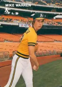 Michael Bruce Warren (born March 26, 1961 in Inglewood, California) is a former Major League Baseball pitcher for the Oakland Athletics. Though he made just 27 starts in his career, he pitched a no-hitter at Oakland–Alameda County Coliseum against the Chicago White Sox on September 29, 1983.[1]