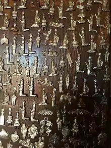 Milagros (also known as an ex-voto or dijes or promesas) are religious folk charms that are traditionally used for healing purposes and as votive offerings in Mexico, the southern United States, other areas of Latin America, and parts of the Iberian peninsula. They are frequently attached to altars, shrines, and sacred objects found in places of worship, and they are often purchased in churches and cathedrals, or from street vendors.