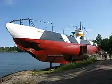 Vesikko is a Finnish submarine built in 1933 that served in the second World War in the Gulf of Finland, now on the summer time exhibition in Suomenlinna. Vesikko is the only remaining submarine of the Finnish Fleet during the World War II. Other four U-boats were scrapped in 1953. During the Winter War and the Continuation war 1939–1944 Vesikko was in active service, conducting patrol and safeguard missions in the Gulf of Finland and Åland archipelago. Vesikko managed to destroy one enemy transport ship as it sank Soviet Vyborg July 3, 1941 near Suursaari. After the peace treaty with the Soviet Union, Vesikko’s days in active service were over because The Peace Treaty of 1947 forbade Finland from owning and operating submarines. Vesikko was however saved for Finnish Navy's possible later educational purposes. But no use emerged for Vesikko and it was transferred to Katajanokka dockyard. The state planned to sell it in 1959 but thanks to the ex-submariners' strong lobbying, the submarine was once again saved and transported from Katajanokka to Suomenlinna in the early 1960s. After opening as a museum July 9, 1973 it has become the Military Museum's most popular exhibition.