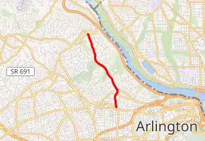Military Road is a two-lane arterial road with bike lanes along the majority of the road that is approximately 2.2 miles (4 km) in length in Arlington County, Virginia. It travels in a southeast-to-northeast direction, with its southern terminus at U.S. Route 29 (US 29), where the roadway continues as North Quincy Street, and its northern terminus at North Old Glebe Road near Virginia State Route 120 (SR 120).