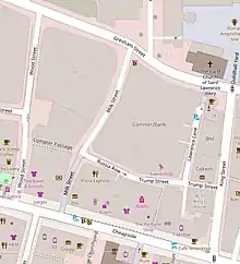 The street runs between Gresham Street in the north and Cheapside in the south. The southern end beyond Russia Row is pedestrianised. On its western side it is joined to Wood Street by Compter Passage (pedestrianised). On its eastern side it is joined by Russia Row.[2]