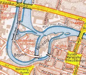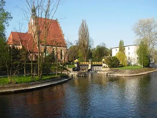 Mill Island (Polish: Wyspa Młyńska) is a historic area located in the Old Town of Bydgoszcz, Poland, covering approximately 6.5 ha: today it is a place with cultural and recreational facilities, surrounded by the Brda river and its branch.[1] The island received the 2012 certificate for Best Tourist Attraction from the Polish Tourist Organisation.[2]