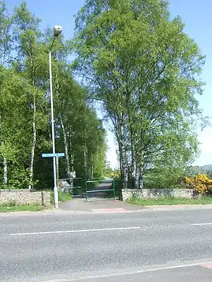 The station was opened in January 1854[1] on the Deeside branch and at first its services were operated by the Deeside Railway. Later it became part of the GNoSR and at grouping merged with the London and North Eastern Railway. Milltimber is likely to have become an unstaffed halt circa 1930[2] and was closed to passengers on 5 April 1937.[1] The station was probably unstaffed at the same time as Murtle with the closure of the Aberdeen suburban service,[3] with its goods services also withdrawn. After its closure in 1937 the line itself remained open until 1966. The line has been lifted and this sections forms part of the Deeside Way long-distance footpath although major roadworks have required a diversion from the route of the old trackbed. In 1899 the station had served as a post office.