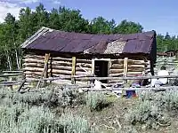 ![]() An abandoned cabin in the ghost town at Miner's Delight | |