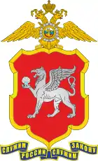 Ministry of Interior in the Republic of Crimea (Russian: МВД по Республике Крым; Ukrainian: Міністерство внутрішніх справ по Республіці Крим; Crimean Tatar: Qırım içki işler nazirligi) is de facto the main police authority in Crimea in the Southern Federal District that was established by Russia after the 2014 Russian annexation of Crimea. Crimea is recognized as part of Ukraine by most of the international community.[nb 1]