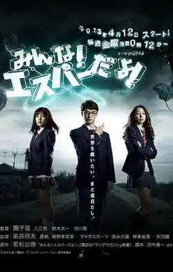 Minna! Esper Dayo! (みんな! エスパーだよ!, Minna! Esper Dayo!) is a 2013 Japanese twelve-part science fiction comedy television miniseries adapted from the seinen manga series Minna! Esper Dayo! written and illustrated by Kiminori Wakasugi.[1][2] It aired on TV Tokyo from April 12 to July 5, 2013. The show's theme song is Japanese-language song "(Where's) The Silent Majority?" by the Japanese singer-songwriter Yu Takahashi. It was followed by a 2015 TV special titled All Esper Dayo! SP.