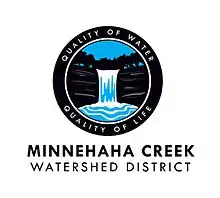 The Minnehaha Creek Watershed District's mission is to collaborate with public and private partners to protect and improve land and water for current and future generations. The Minnehaha Creek in its name refers to the water link from Lake Minnetonka to the Mississippi River. The watershed is much bigger than that lake or creek, and includes 29 communities, and encompasses 178 square miles (460 km2). It stretches West from about Minnehaha Falls to Saint Bonifacius and North to Maple Plain. It includes 129 lakes and 8 major creeks in Hennepin and Carver counties. Some of the lakes in the district are: Bde Maka Ska, Harriet, Nokomis, Parley, Minnewashta and Katrina.