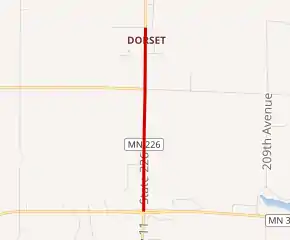 Highway 226 serves as a short north–south connector route between State Highway 34 and the community of Dorset in north-central Minnesota.