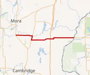 Highway 70 serves as an east–west route between Mora, Brunswick, Rock Creek, and Grantsburg, WI.