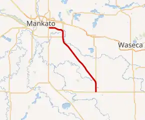 Minnesota State Highway 83 (MN 83) is a 23.760-mile-long (38.238 km) highway in south-central Minnesota, which runs from its intersection with State Highway 30 near Waldorf and continues north to its northern terminus at its intersection with State Highway 22 in Mankato.