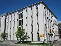 The campus for the University of Regina was designed in tandem with Yamasaki's plan for Wascana Centre, a park built around Wascana Lake in Regina, Saskatchewan. The original campus design was approved in 1962. Yamasaki was awarded contracts to design the first three buildings: the Classroom Building, the Laboratory Building, and the Dr. John Archer Library, which were built between 1963 and 1967.[28]