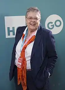 She has also availed herself of the support offered by conservative media outlets and organizations. In 2017, she co-founded Hands Across the Aisle, a nonpartisan coalition[11] of "radical feminists, lesbians, Christians and conservatives" who oppose "gender identity legislation".[12] That same year, she appeared in the "Biology Isn't Bigotry: Why Sex Matters in the Age of Gender Identity" panel sponsored by The Heritage Foundation.[13][14] In February 2018, she was a speaker at the "Gender and Sex Conference" in Madrid, sponsored by HazteOir/CitizenGo.[15][16] In an essay for The Federalist, she spoke out against bathroom laws that permit transwomen to use opposite-sex restrooms and locker rooms, describing them as "a matter of unspeakable oppression against females".[17]