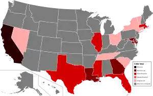 The Miss Grand USA organization has been franchising the state competitions to individual organizers since 2016,[1] in which some cases are responsible for more than one state.[6][7] Each U.S. state must choose a candidate who competes at the national Miss Grand USA pageant, however, delegates may be appointed state or regional titles if a state pageant is not offered in their area.[2][8]
